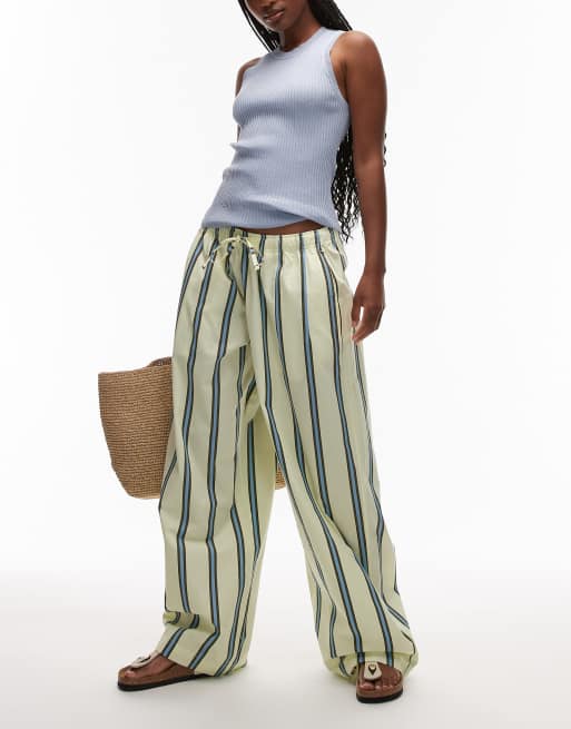 Topshop – Gestreifte Popeline-Hose mit weitem Bein und elastischem Bund