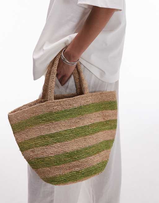 Topshop – Goldie – Strohtasche in Grün gestreift