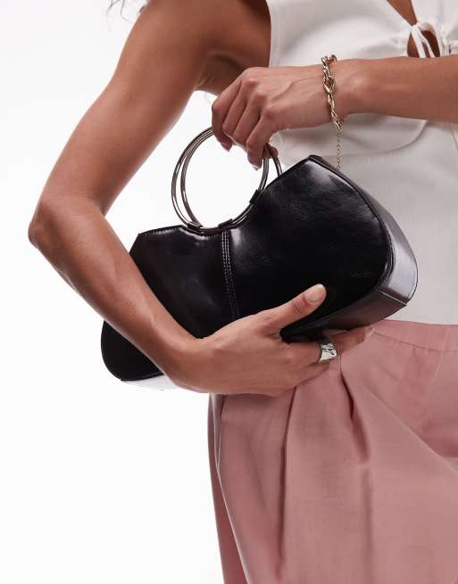 Topshop – Griffith – Handtasche in Schwarz mit Metallring