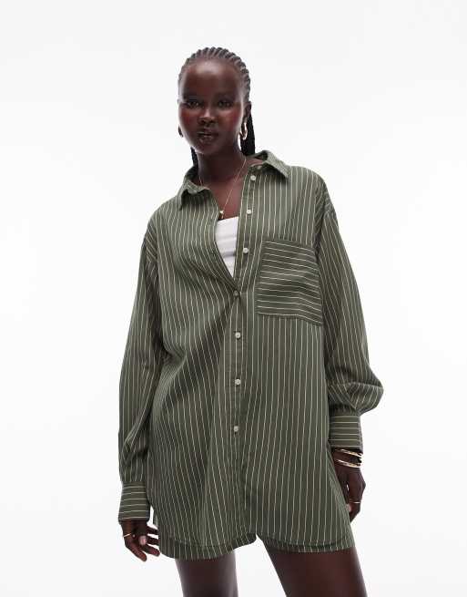 Topshop – Hemd in Olivgrün mit Streifen, Kombiteil