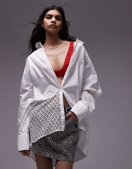 Topshop – Hemd in Weiß mit Lochmuster-Patches