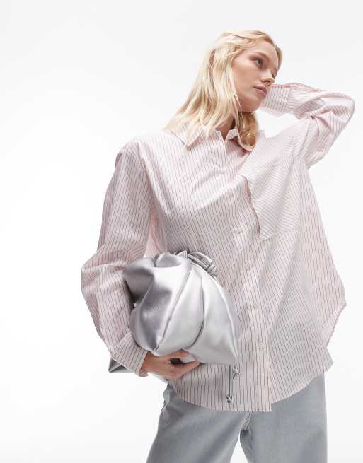 Topshop – Hemd in Weiß mit Streifen in Rot und Taschendetail