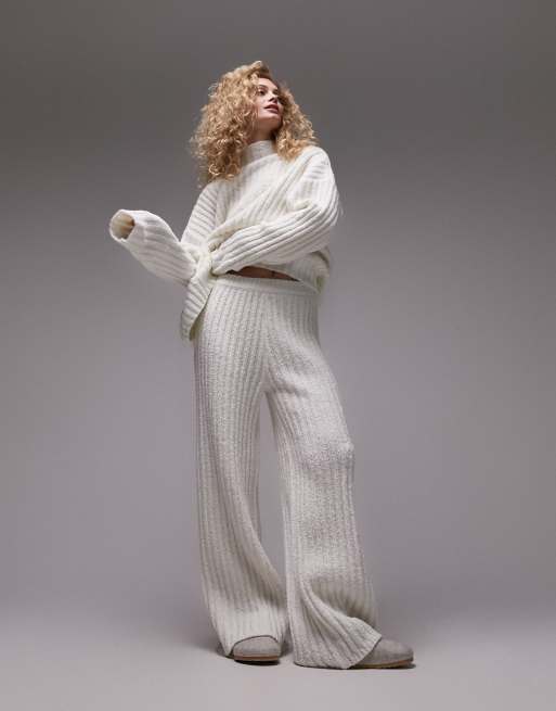 Topshop – Hochwertige, gestrickte Bouclé-Hose in Cremeweiß