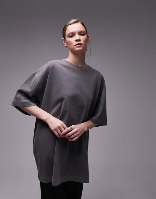 Topshop – Hochwertiges Basic-Oversize-T-Shirt in verwaschenem Schwarz mit Rundhalsausschnitt, Longline-Schnitt und Acid-Waschung