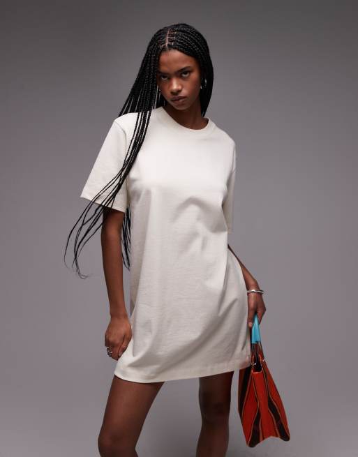 Topshop – Hochwertiges Oversize-T-Shirt-Kleid in Steinbeige