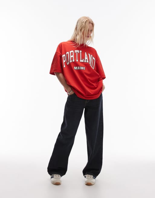 Topshop – Hochwertiges Super-Oversize-T-Shirt in Rot mit „Portland“-Grafik