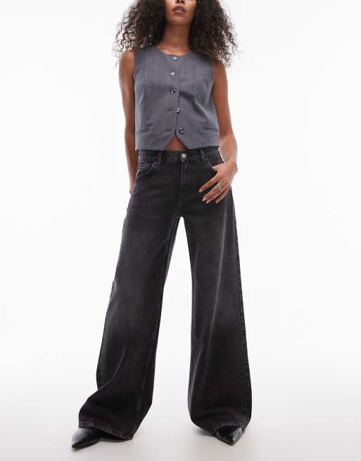 Topshop – Horizon – Jeans in verwaschenem Schwarz mit weitem Bein und mittelhohem Bund