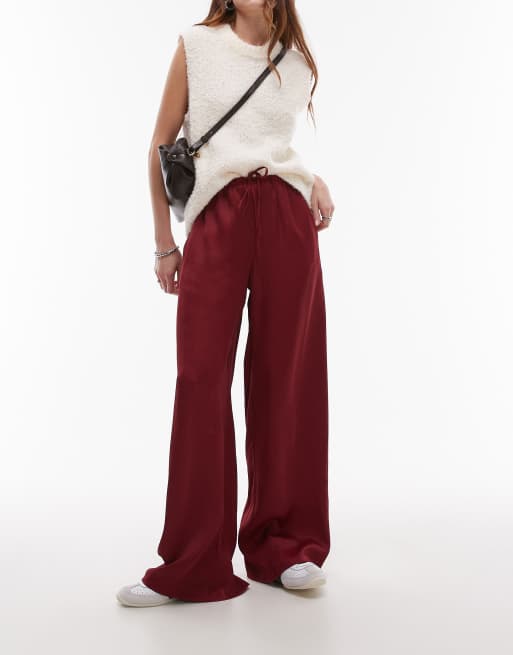 Topshop – Hose aus Satin mit weitem Bein und Bindegürtel