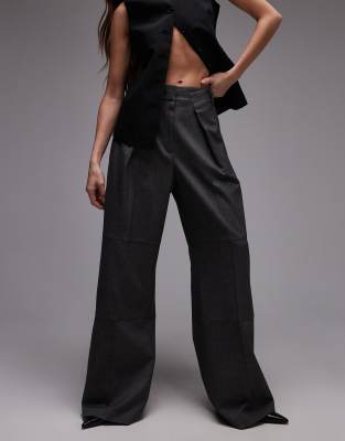 Topshop – Hose in Grau mit Fischgrätmuster und Faltendetail am Bund, Kombiteil
