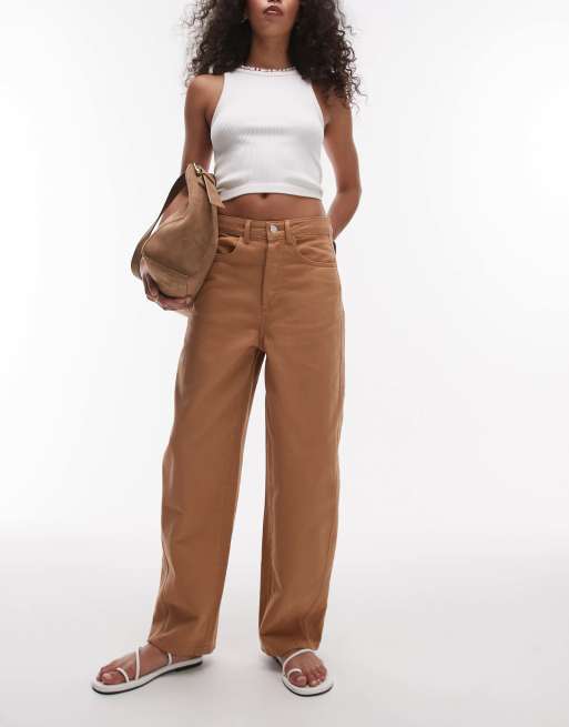 Topshop – Hose in Hellbraun mit lockerem, abgerundetem Beinschnitt und Ziernaht