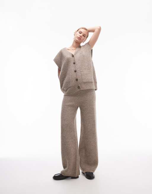 Topshop – Hose mit quadratischem Strickmuster in Hellbeige, Kombiteil