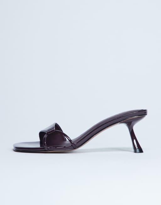 Topshop – Ily – Lack-Mules in Burgunderrot mit Absatz