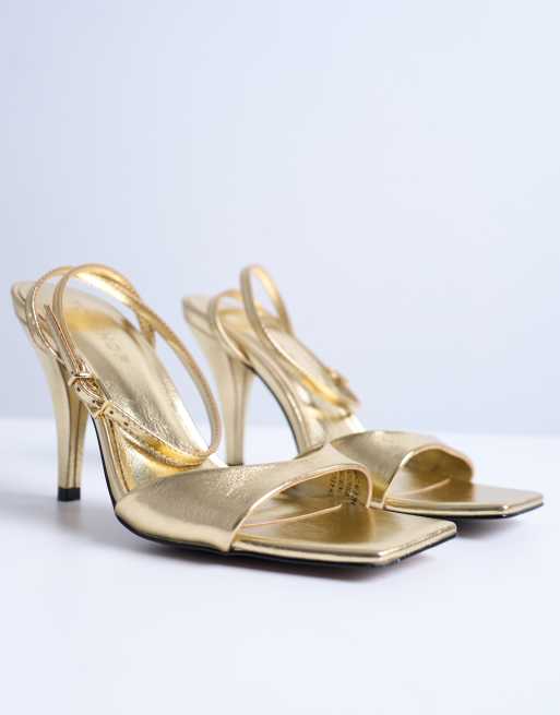 Topshop – Immy – Sandalen in Gold mit konischem Absatz