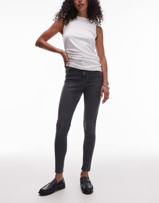 Topshop – Jamie – Skinny-Jeans in verwaschenem Schwarz mit hohem Bund