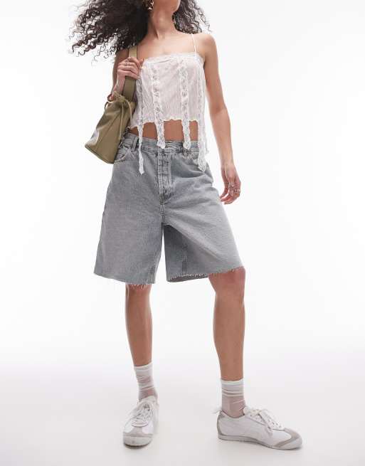 Topshop – Jeans-Jorts in Gravel-Waschung mit lockerem Schnitt