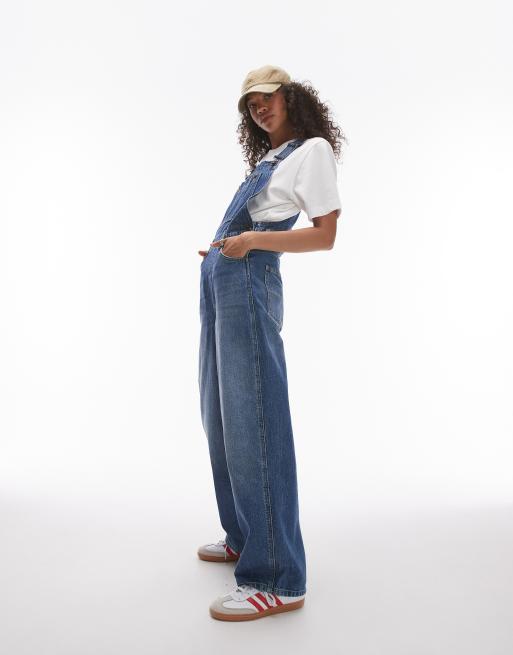 Topshop – Jeans-Latzhose in Mittelblau mit Kreuzschraffur