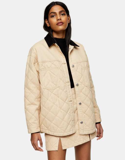 Topshop – Jeansjacke mit Steppdesign in Ecru