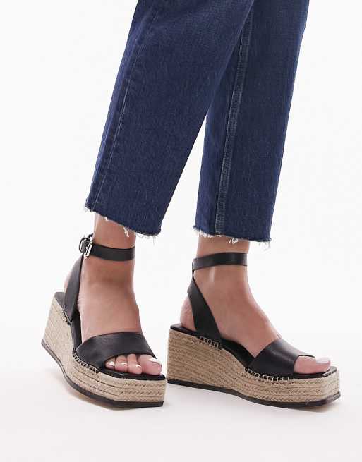 Topshop – Jessie – Zweiteilige Sandalen in Schwarz mit Plateausohle