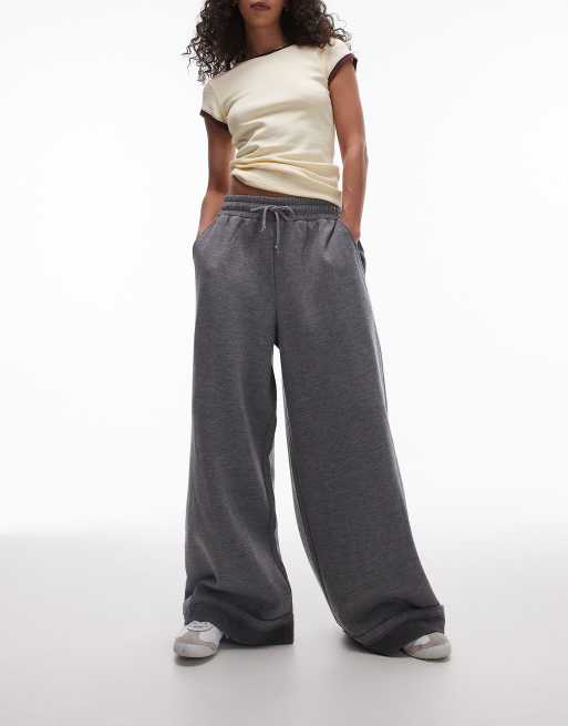 Topshop – Jogginghose mit weitem Bein und umgeschlagenem Saum aus hochwertigem Material in Grau meliert