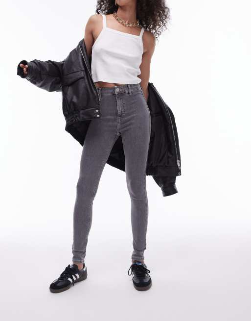 Topshop – Joni – Sehr eng geschnittene Skinny-Jeans in Grau mit hohem Bund