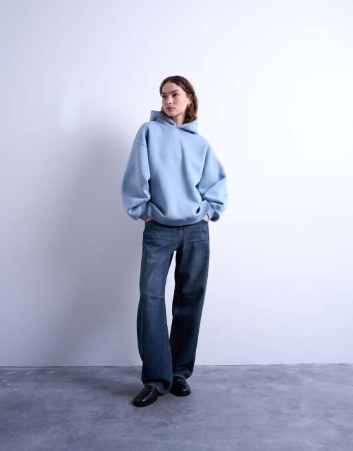 Topshop – Kapuzenpullover in Blau mit Ballonärmeln