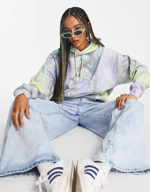 Topshop – Kapuzenpullover mit buntem Marmormuster