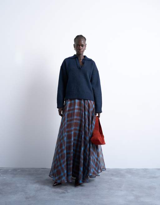 Topshop – Karierter Maxi-Tellerrock in Blau