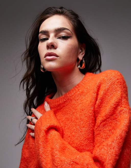 Topshop – Kastiger Strickpullover aus Bouclé in Orange
