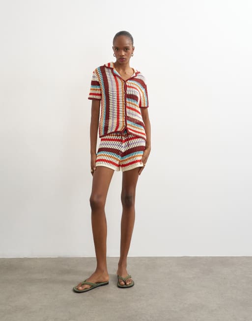 Topshop knitted crochet stripe shirt and short co-ord