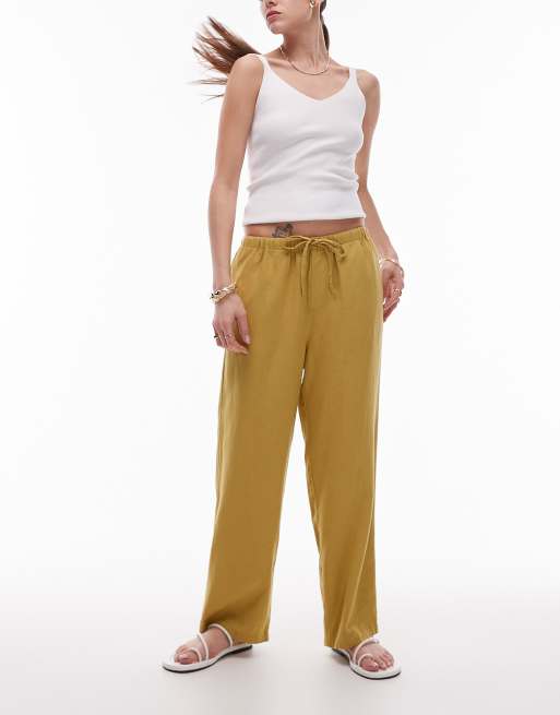 Topshop – Knöchellange Hose aus Leinen in Limettengrün mit mittelhohem Bund