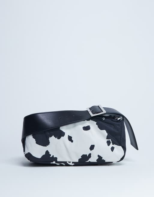 Topshop – Kylie – Umhängetasche aus Nylon mit Kuhfleckenmuster und Kontrast-Riemen