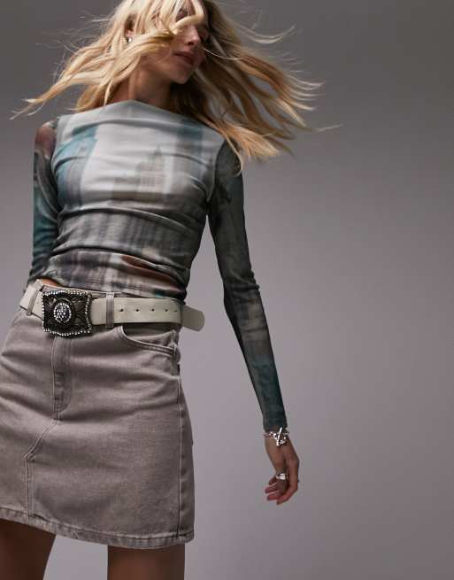 Topshop – Langärmliges Oberteil aus Netzstoff mit mehrfarbigem Stadtlandschafts-Print