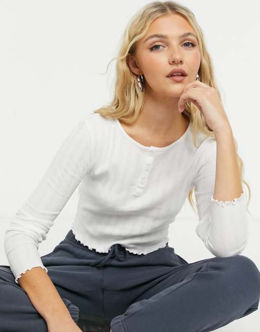 Topshop – Langärmliges Oberteil mit Knopfleiste in Weiß