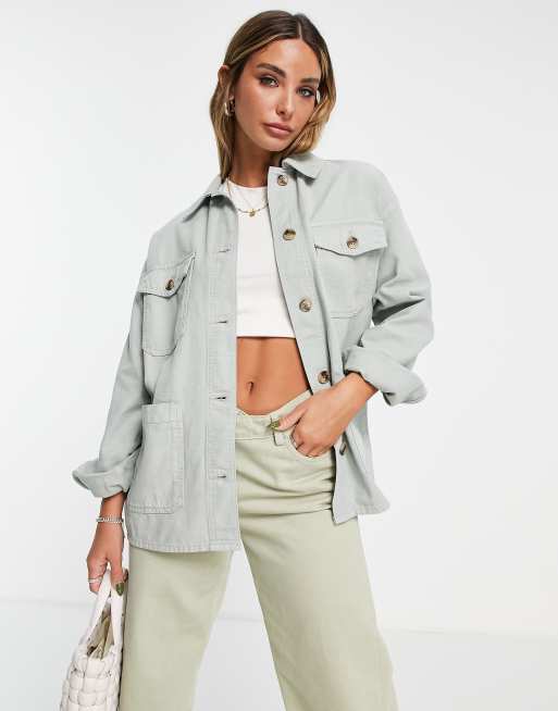 Topshop – Leichte Oversize-Hemdjacke in Salbeigrün mit gewebtem Label