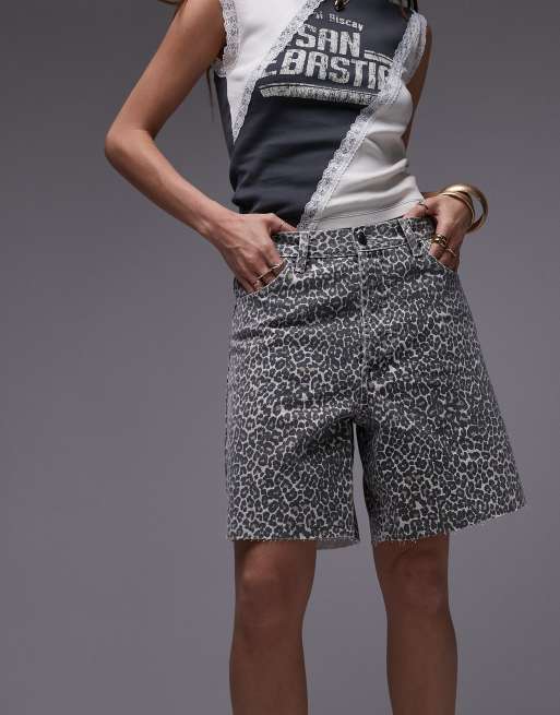 Topshop – Locker geschnittene Jort aus Denim mit Leopardenprint