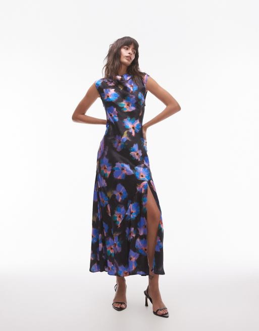 Topshop – Maxikleid mit drapiertem Ausschnitt und großem lila Blumenmuster
