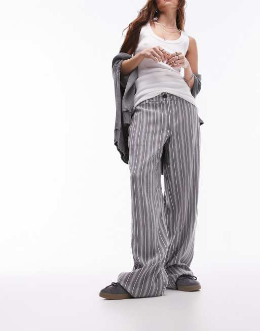 Topshop – Mehrfarbig gestreifte Hose mit tiefsitzender Taille