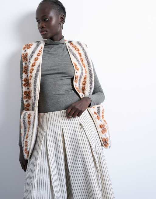 Topshop – Mehrfarbige Weste aus Teddyfell mit abstraktem Print