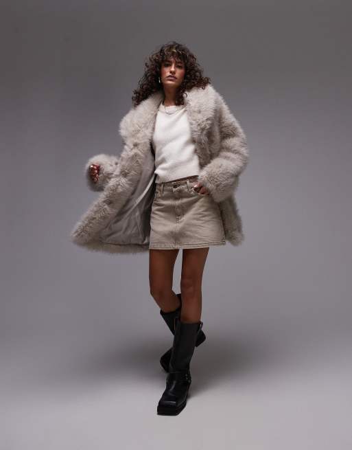Topshop – Mehrfarbiger Midi-Mantel aus Kunstpelz