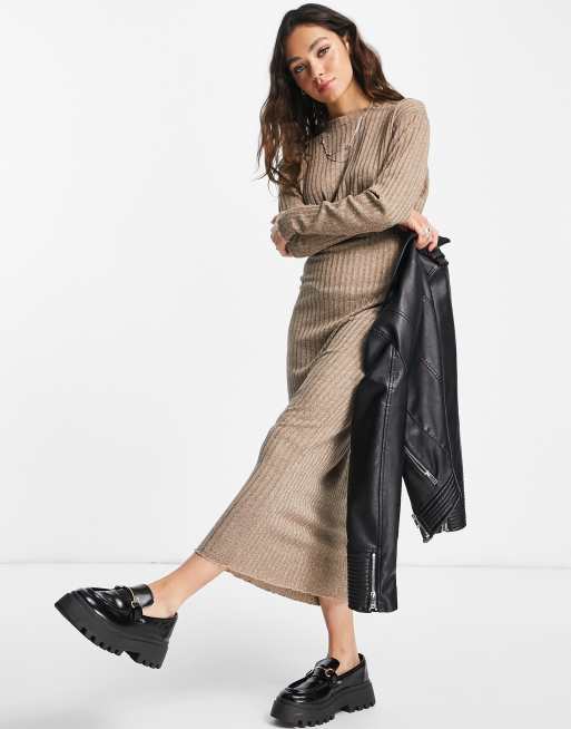 Topshop – Midaxikleid mit Bahnendesign in Stein