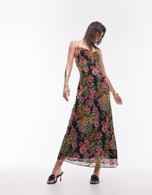 Topshop – Midi-Camisole-Kleid zum Reinschlüpfen mit Leoparden- und Rosenmuster