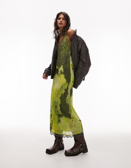 Topshop – Midi-Trägerkleid aus Spitze in Hellgrün