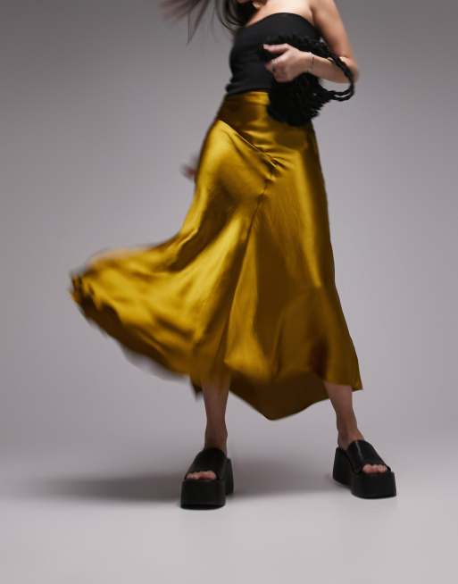 Topshop – Midirock in Gelb mit asymmetrischem Schwalbenschwanz