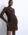 Topshop – Mini-Strickkleid in Schokobraun mit Rundhalsausschnitt und durchgehender Knopfleiste