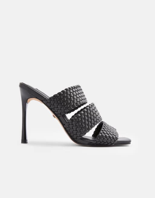 Topshop – Mules in Weboptik mit Absatz in Schwarz