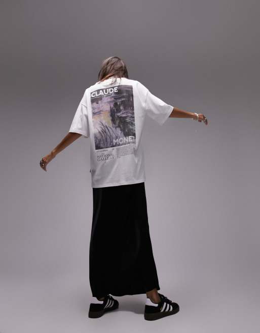 Topshop – National Gallery – Oversize-T-Shirt in Ecru mit Lilien-Grafikprint von Claude Monet