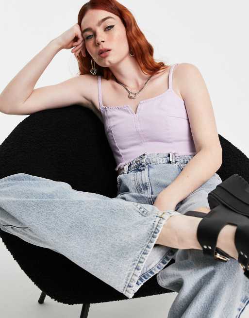 Topshop – Oberteil mit Einkerbung in fliederfarbener Waschung