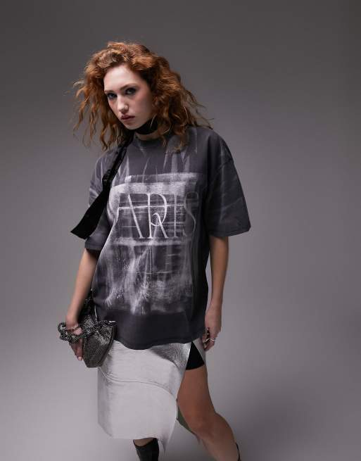 Topshop – Oversize-T-Shirt in Schwarz mit „Paris“-Grafikprint