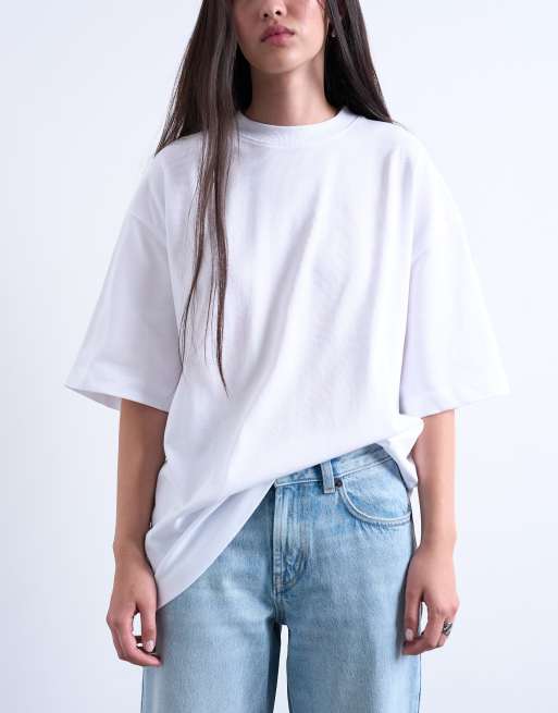 Topshop – Oversize-T-Shirt in Weiß mit überschnittener Schulter