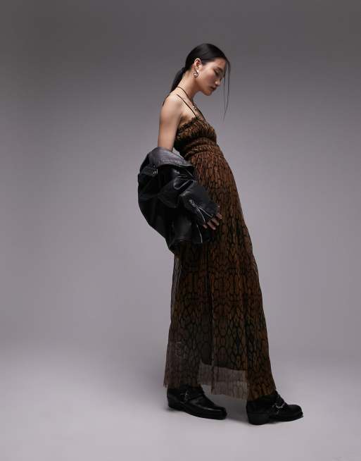 Topshop – Plissiertes Maxi-Trägerkleid aus Jersey mit Animal-Print und Tunnelzugbund